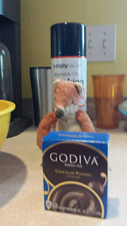 Welcome to my recipe contest entry #1. This entry is from my close friend, Little Bear. Little Bear might be a cousin of Sandy's, Jerry and Ben but we're not 100% sure. Little Bear loves coffee, anything Starbucks related, and is a guest judge at the International Chocolate Competition. He shared a recipe for a chocolate cake with a cup of coffee in it, a box of pudding, and special cake flour.